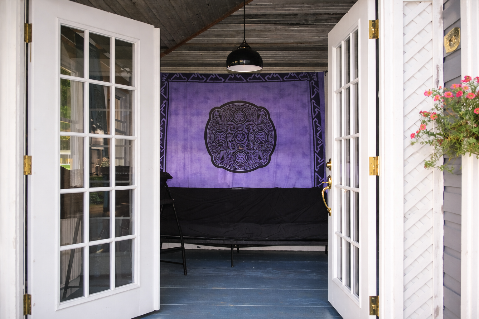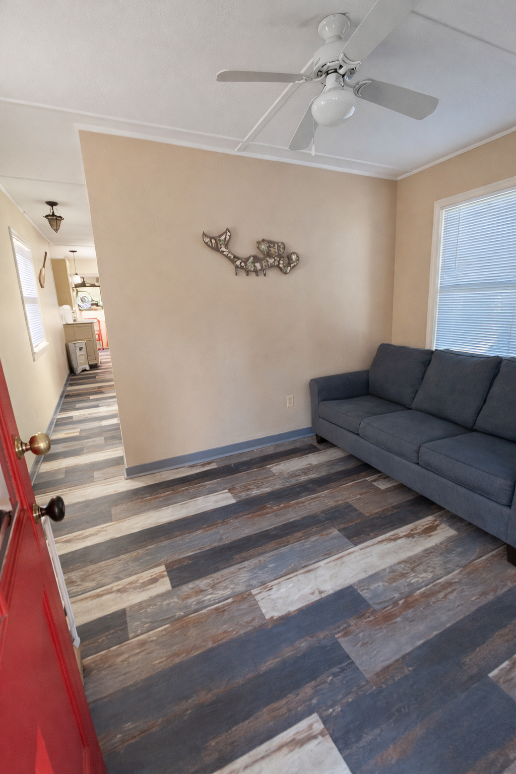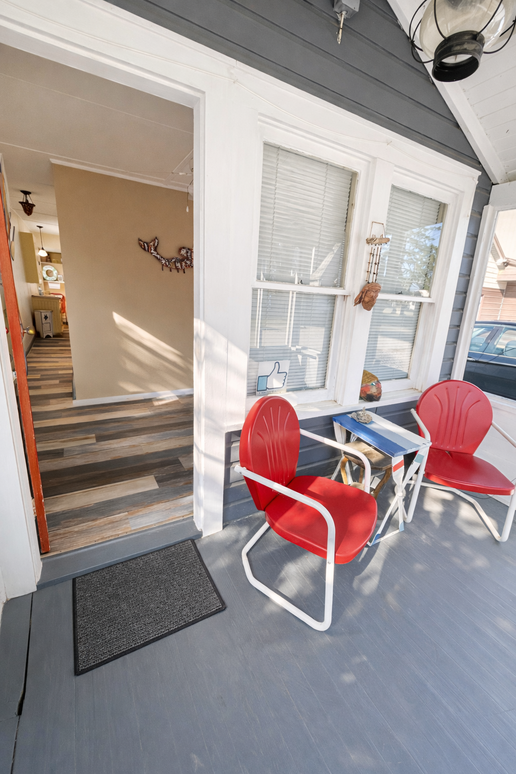 Enclosed front porch with sliding windows, allowing you to enjoy the space comfortably—even during inclement weather